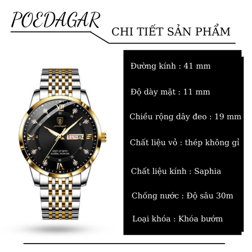 Đồng Hồ Nam Chính Hãng POEDAGAR Dây Thép Cao Cấp Có Lịch Ngày Kiểu Dáng Thời Trang Doanh Nhân Đẹp Giá Rẻ