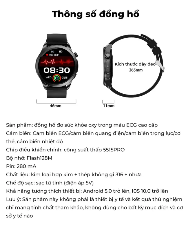 Đồng hồ thông minh ECG Theo dõi đường huyết không xâm lấn