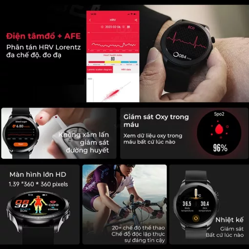 - Đồng hồ thông minh đường huyết mới 2023 1.39 -inch 360*360 HD Touch Màn hình lớn