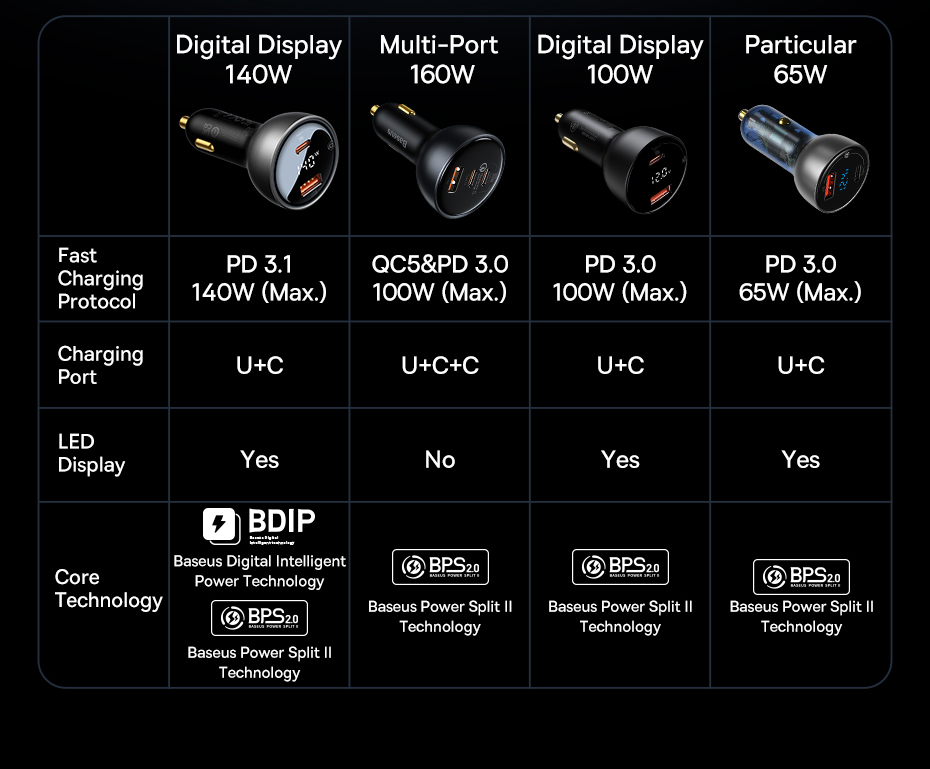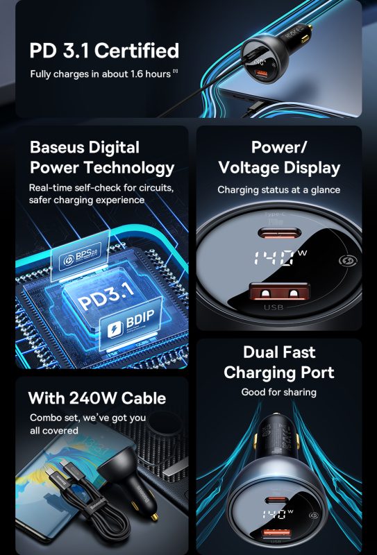 Sạc ô tô Baseus 140W PD3.1 Sạc nhanh QC3.0