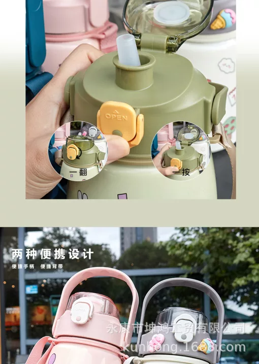 Kiểu dáng: có tay cầm, có dây, dung tích lớn, cốc bụng to, có ống hút, có khóa