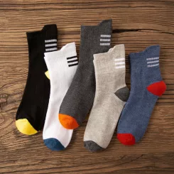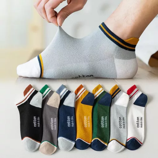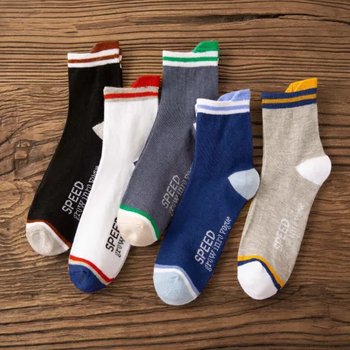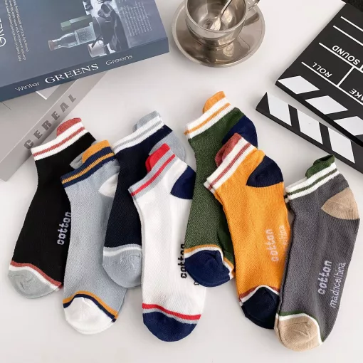 Tất, vớ nam nữ cổ ngắn gân dọc phối viền chất cotton cao cấp