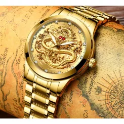 Đồng HỒ Nam FNGEEN SL68 Mặt Rồng 3D Mắt Đỏ Dây Thép Cao Cấp Tặng Vòng Tay Nam Mạ Bạch Kim Đính Đá Kim Cương Toàn Diện