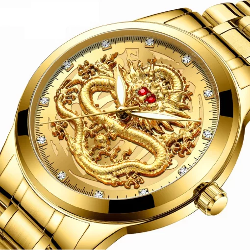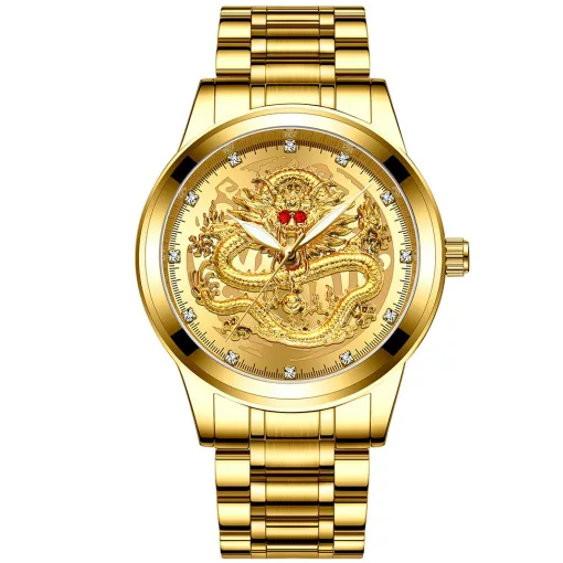 Đồng HỒ Nam FNGEEN SL68 Mặt Rồng 3D Mắt Đỏ Dây Thép Cao Cấp Tặng Vòng Tay Nam Mạ Bạch Kim Đính Đá Kim Cương Toàn Diện