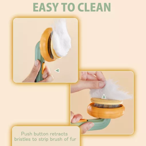 Dễ dàng làm sạch: Chỉ cần nhấp vào nút trên tay cầm và lông rút trở lại lược, đánh bóng giúp tóc khá đơn giản để loại bỏ tất cả lông khỏi lược.