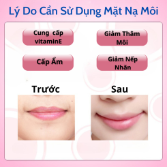 – Dưỡng môi tận gốc: Cung cấp dưỡng chất giúp môi mềm mịn và khỏi nứt nẻ.