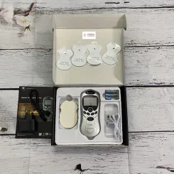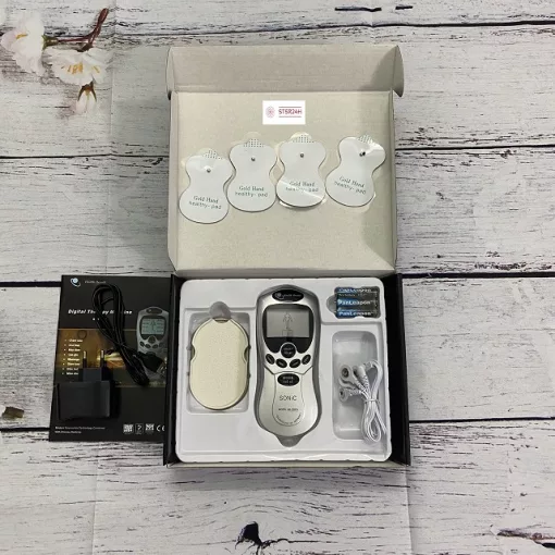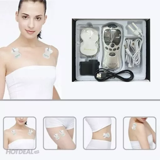 Bộ sản phẩn gồm 1 củ sạc. 1 dây nối củ sạc, 3 cục pin aaa ,4 miếng dán 1 dây dẫn từ máy vào 4 miếng dán , sách hướng dẫn sử dụng