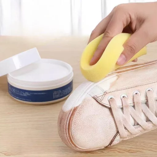 Sáp tẩy trắng giày giúp đánh bay các vết bẩn cứng đầu giúp khử trùng và làm sáng giày. Sau khi vệ sinh xong sẽ để lại lớp màng dưỡng chống thấm nước và bụi bẩn. Sáp vệ sinh giày khử mùi kết hợp bọt biển nano làm sạch dễ dàng hơn, tiết kiểm công sức.