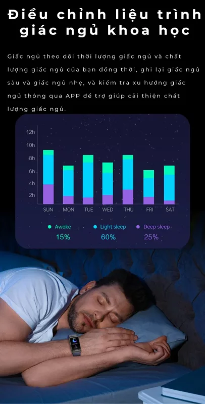 - Theo dõi giấc ngủ, nhắc nhở cuộc gọi và tin nhắn, tiêu thụ điện năng cực thấp và độ bền lâu.