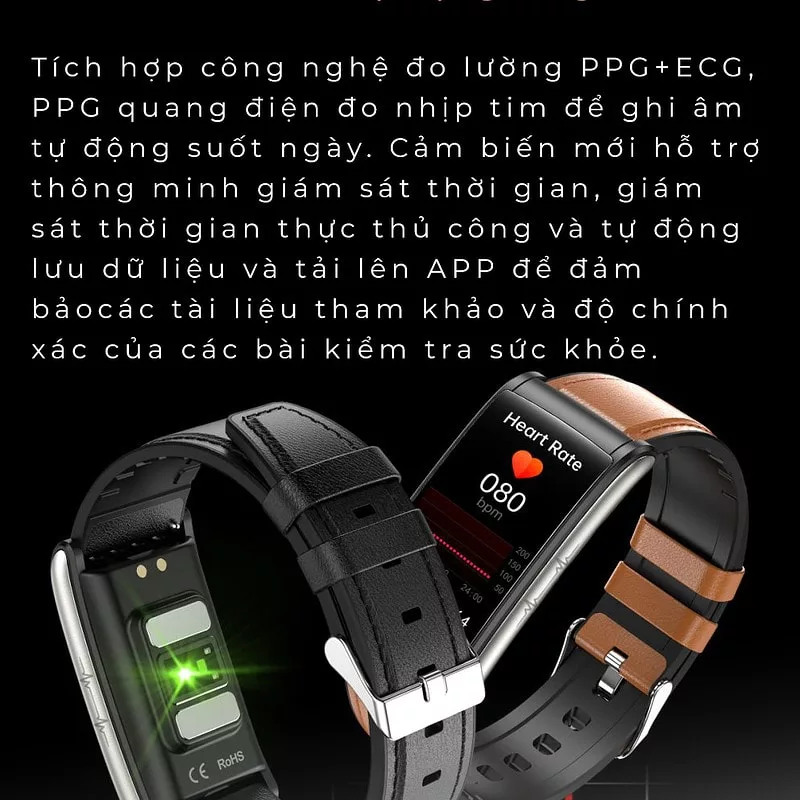 - Vòng đeo tay theo dõi sức khỏe đường huyết ECG E600 Egg Roll.