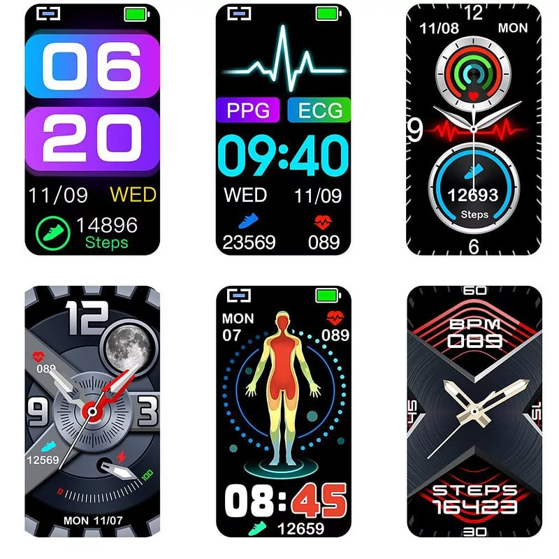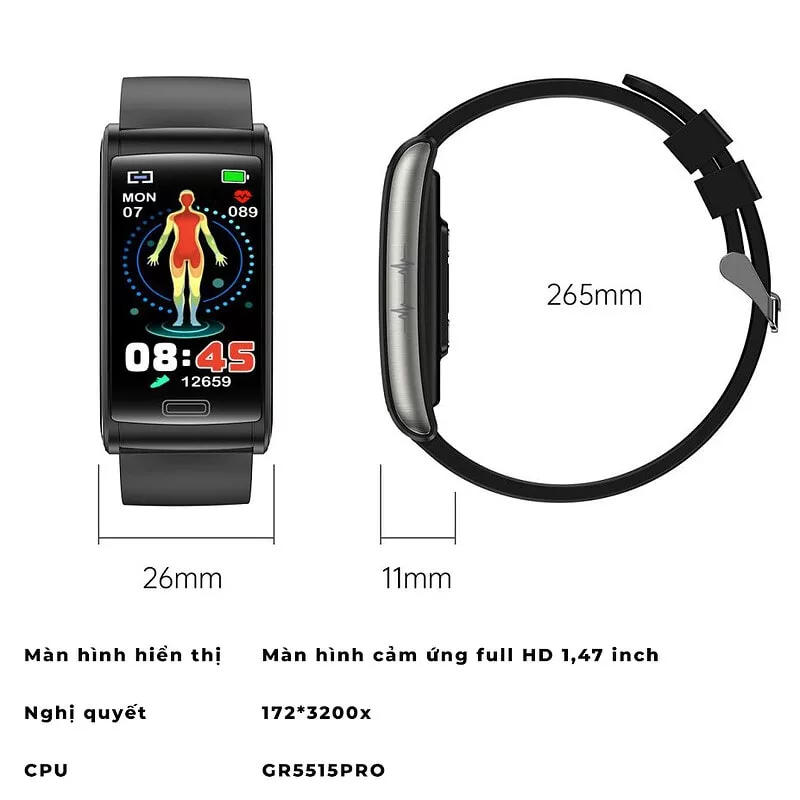 - Màn hình cảm ứng 172*320 HD 1,47 inch, ECG (512HZ).