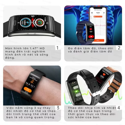 - Màn hình cảm ứng 172*320 HD 1,47 inch, ECG (512HZ).