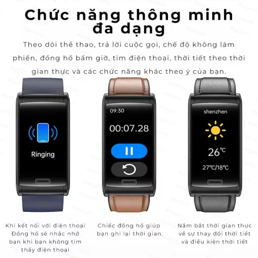 - Theo dõi giấc ngủ, nhắc nhở cuộc gọi và tin nhắn, tiêu thụ điện năng cực thấp và độ bền lâu.